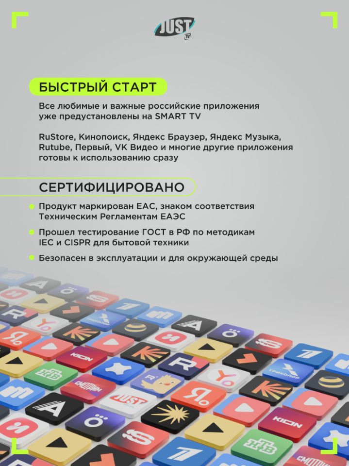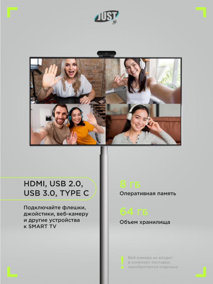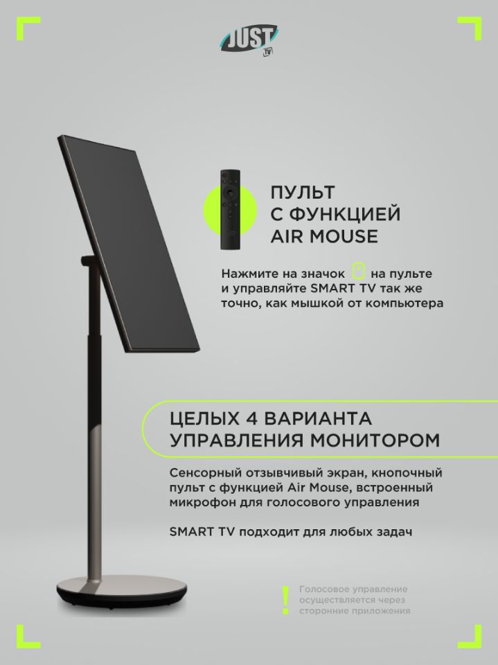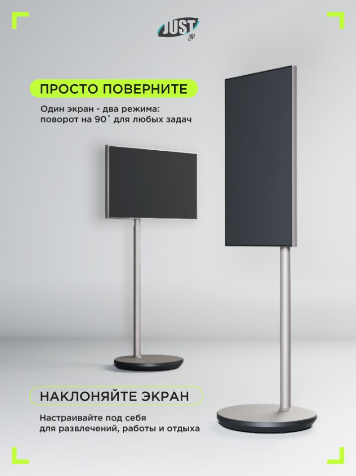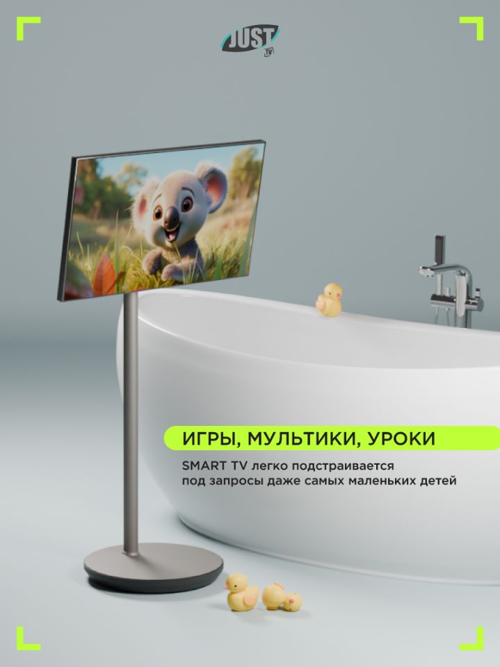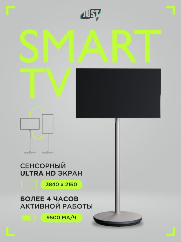 JUST AC TV 32" — это мобильная интерактивная панель, которая меняет подход к работе и развлечениям. Устройство сочетает в себе удобство планшета, функциональность Smart TV и возможности презентационного оборудования.